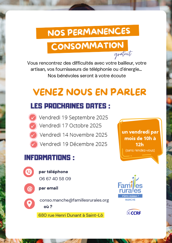 Cette permanence est tenue par 2 à 3 bénévoles compétents et formés pour un accompagnement dans le règlement à l'amiable des litiges entre particuliers et/ou professionnels. En s’appuyant sur une expérience professionnelle dans le domaine de la consommation.